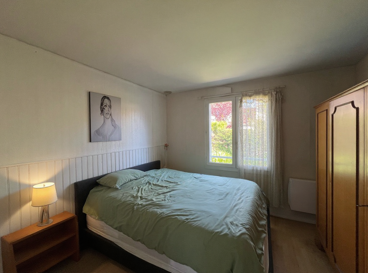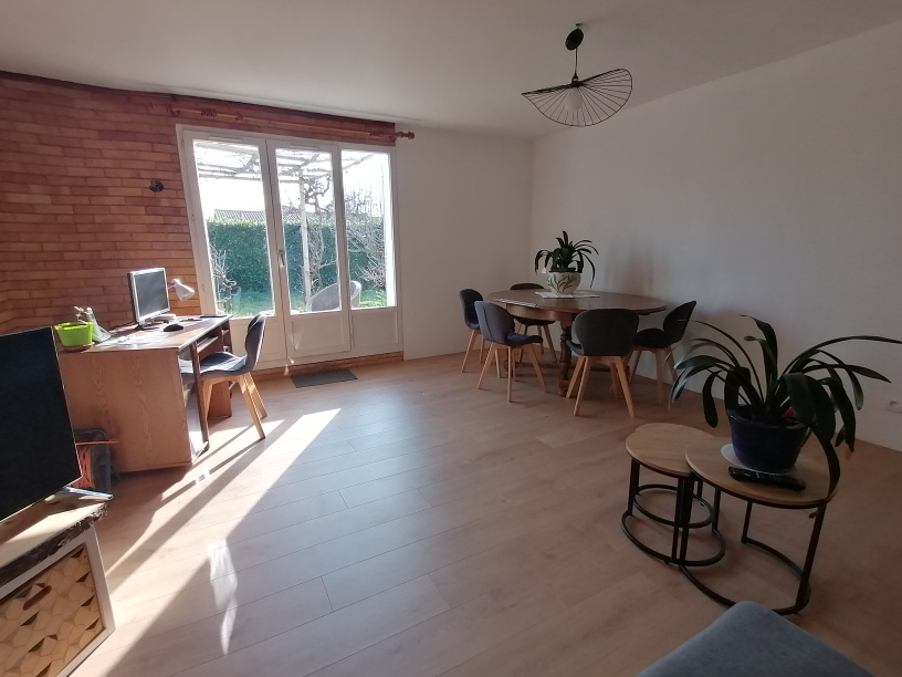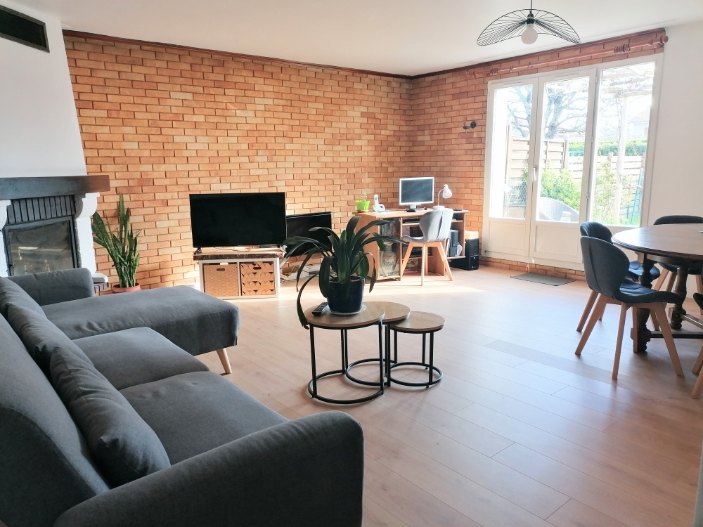 Dans secteur pavillonnaire au calme, maison de plain-pied et mitoyenne par le garage de 84 m², comprenant : hall d’entrée, cuisine fermée aménagée, cellier / salle d’eau, séjour. La partie nuit est composée de 3 chambres, salle de bain, wc séparé. Terrain de 292 m² clos et arboré avec fruitiers. La partie arrière du jardin jouxte l'espace vert clos de 1100m2 commun au lotissement, offrant une extension naturelle calme et verdoyante pour les jeux d'enfants (vélo ballon raquettes) ou d'adultes (pétanque, badminton). Garage attenant.